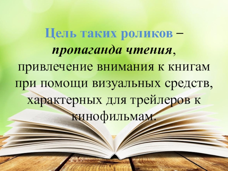 Слайд 3Цель таких роликов – пропаганда чтения, привлечение внимания к книгам при