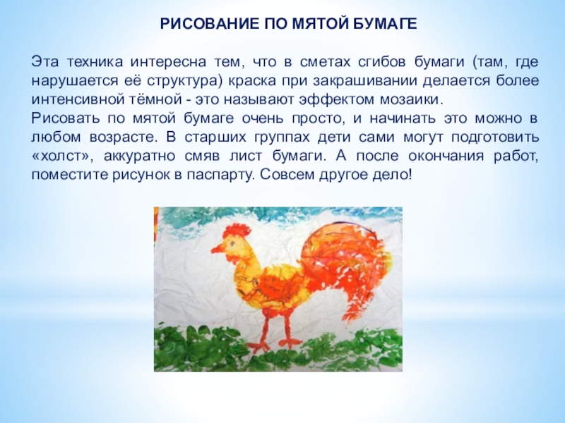 Слайд 12 РИСОВАНИЕ ПО МЯТОЙ БУМАГЕ
