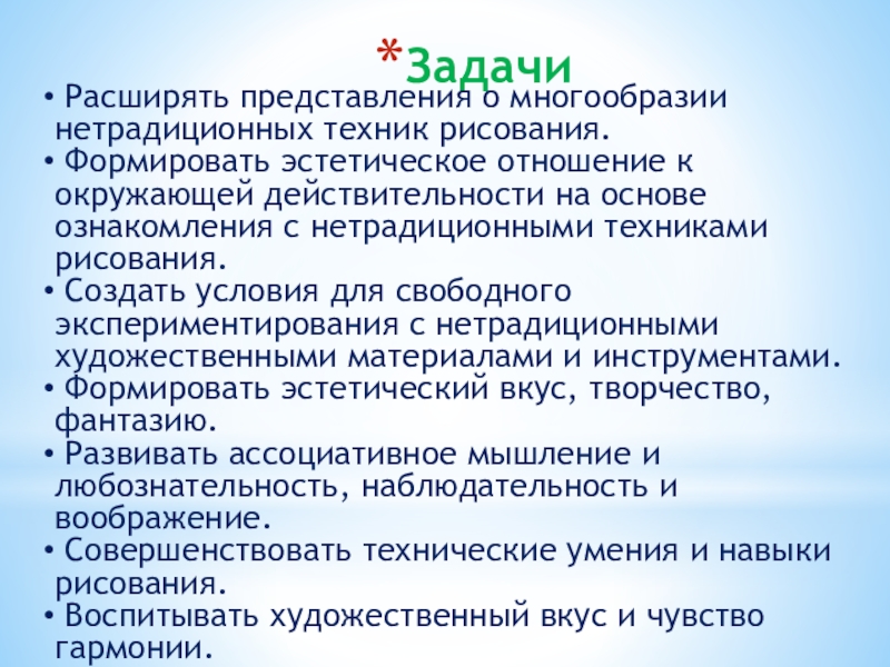 - Развитие эстетического восприятия художественных образов и предметов окружающего вида