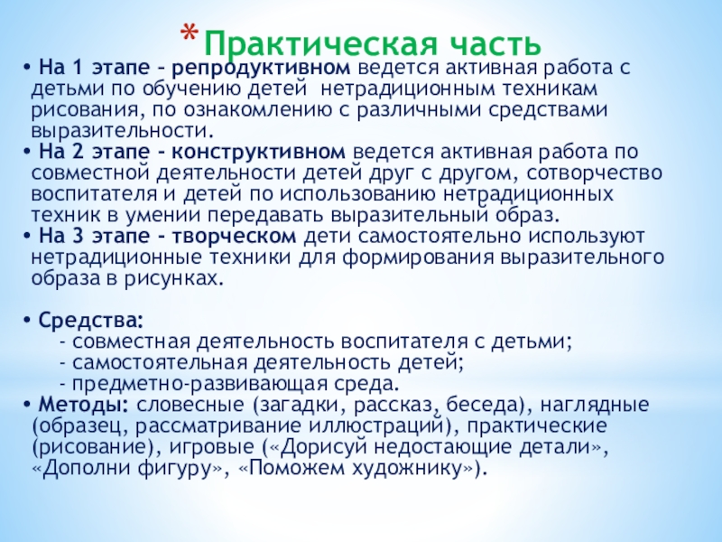 детьми по обучению детей нетрадиционным техникам рисования, по ознакомлению с различными средствами выразительности.