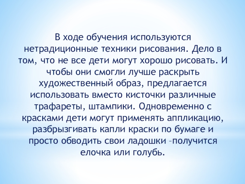 Слайд 5В ходе обучения используются нетрадиционные техники рисования. Дело в том, что