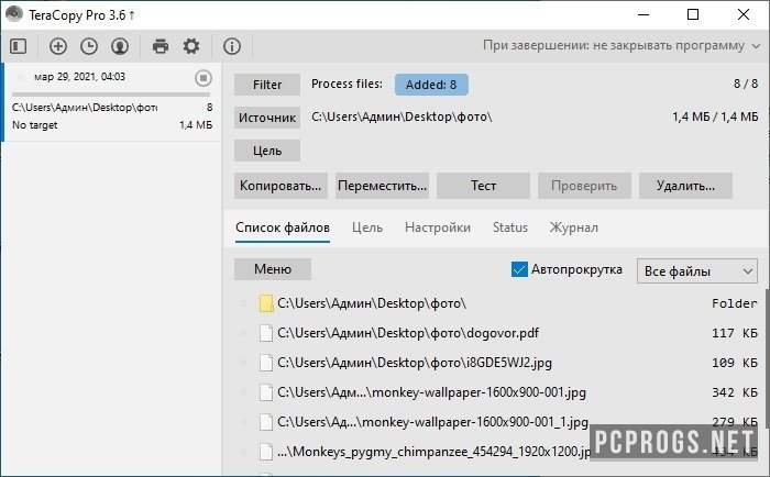 Перед тем как скачать TeraCopy, рекомендуем ознакомится с основными возможностями продукта. В последней версии приложения имеется русская локализация интерфейса, а также настройки для интеграции в проводник. Программа удобна в работе при переносе крупных архивов, больших папок с мелкими файлами и не только.