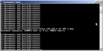 Команда tftp позволяет перейти к управлению клиентом tftp. С помощью команды get мы отправляем к TFTP серверу запрос на чтение файла. В качестве параметров указываются адрес tftp сервера:имя запрашиваемого файла.