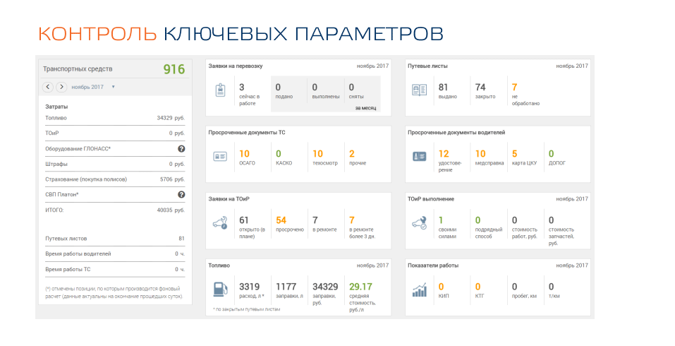 — техническое состояние ТС контролируется в онлайн-режиме, вся информация о возникших поломках и неисправностях оперативно направляется сотрудникам, отвечающим за поддержание автопарков в исправном состоянии;