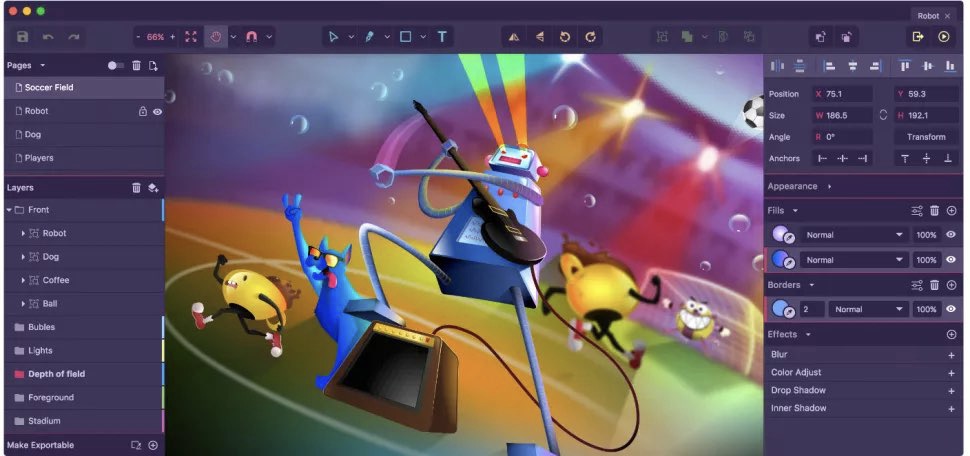 Это полноценный графический редактор со встроенными дизайнерскими ресурсами: иконками, иллюстрациями и фотографиями. Lunacy заставляет программное обеспечение и контент работать вместе.