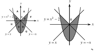 2) Возможная доработка (Паскаль, разбиение области на две части прямой x = 0):