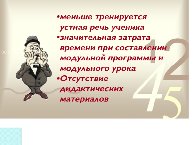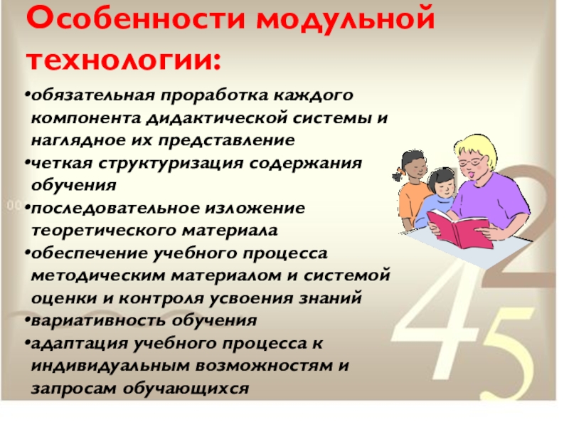 – мотивация педагога (повторим, что модульная система требует усилий и затрат времени на разработку и иной системы взаимодействия со студентами);