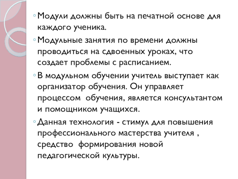 Слайд 18Модули должны быть на печатной основе для каждого ученика.