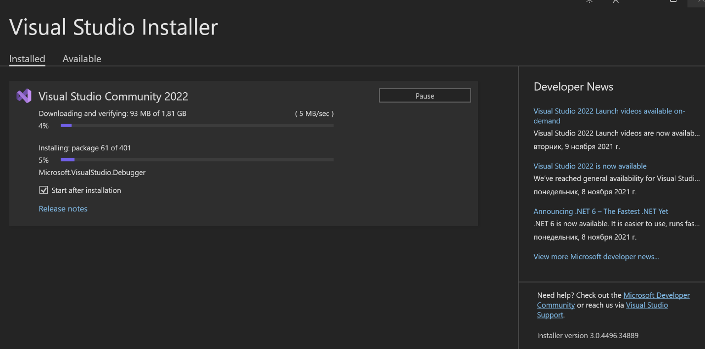 Загрузка и установка Microsoft Visual Studio
