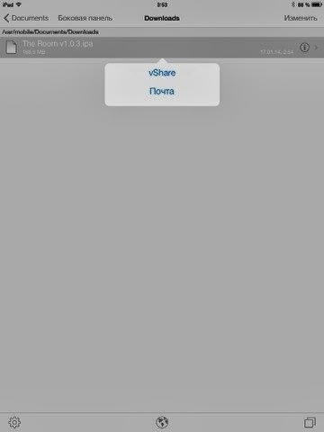 Открываете iFiles, заходите в нужный каталог -> долгий тап -> открыть в vShare.