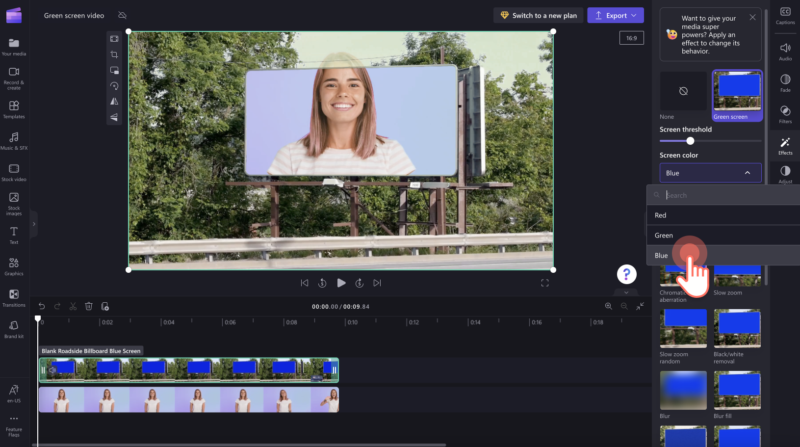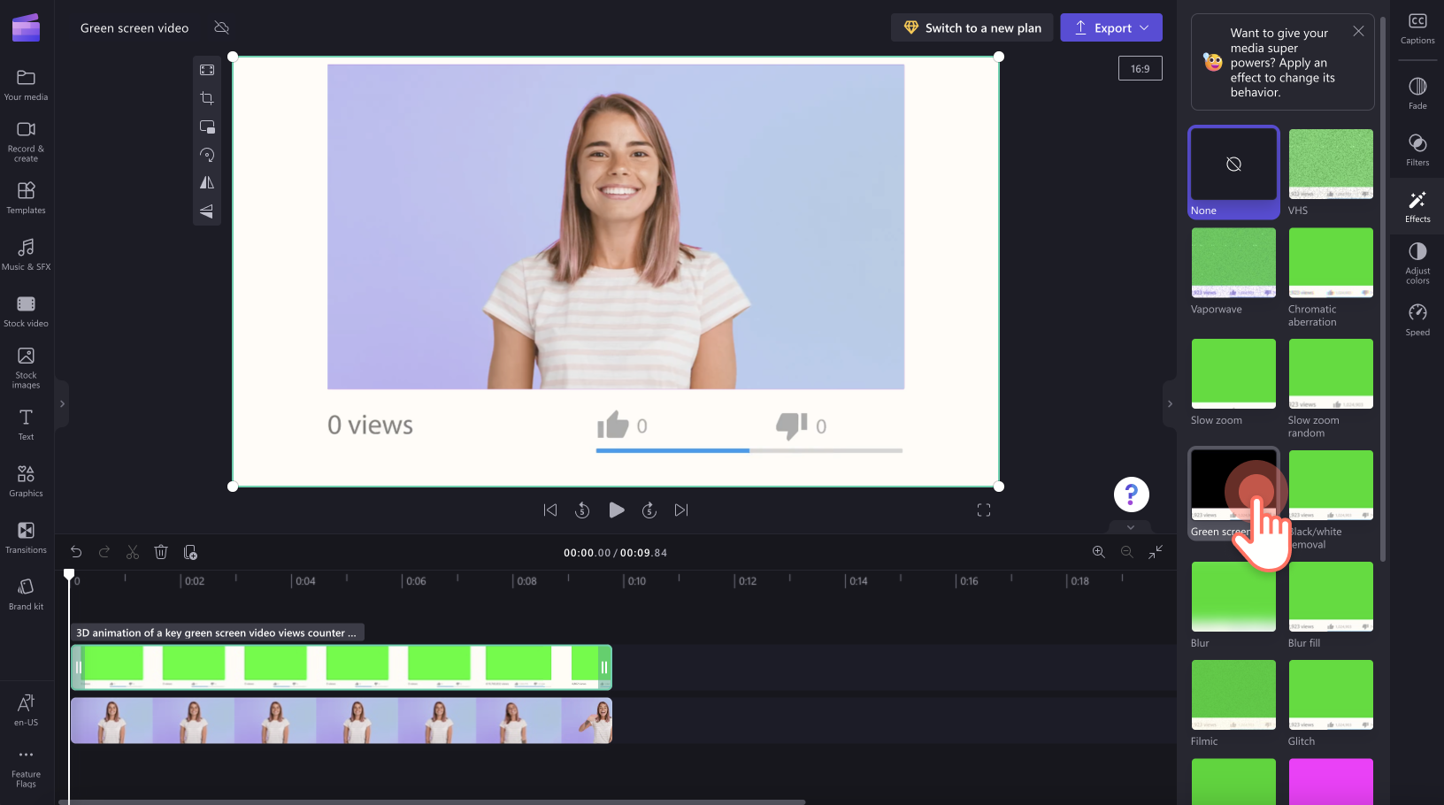 Бесплатные инструменты для работы с хромакеем в Clipchamp помогут вам заменить фон или применить спецэффекты в любом ролике, будь то прохождение игры для YouTube, реклама для Instagram, учебный материал или корпоративное видео.