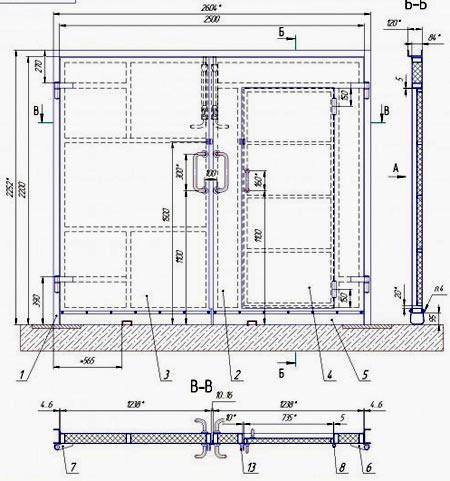 Схема с размерами распашных ворот с калиткой