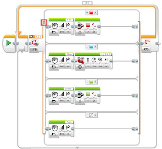 Аналогичный блок есть и в NXT, он позволяет в зависимости от значения переменной или показания датчика выполнять разные последовательности действий.