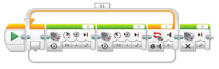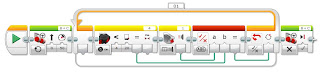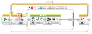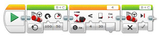 Этот блок новый, в NXT подобного блока не было. Он позволяет выходить из цикла — оставшиеся блоки цикла выполняться не будут, и программа перейдет к блокам после цикла. В «шапке» блока задается имя цикла, который должен быть завершен.