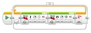 Вторая программа представляет из себя начало классического решения в соревновании «Кегельринг»: робот кружится вокруг своей оси до тех пор, пока не увидит перед собой банку: