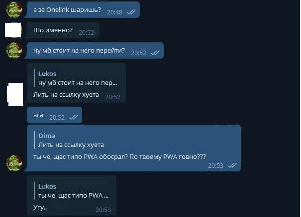 Вывод каждый пусть сделает для себя сам. Разумеется, конкретно в вашей партнерке PWA не такая как у конкурентов, особенная и неповторимая, но если за всей этой бравадой нет аргументов и адекватных пруфов, то отныне любой, кто кудахчет, что ПВА пушка и он клоаку собрал-изобрел, говорит либо «Лукос красавчик», либо то, что он сам ••• (обманщик, лжец, врун).