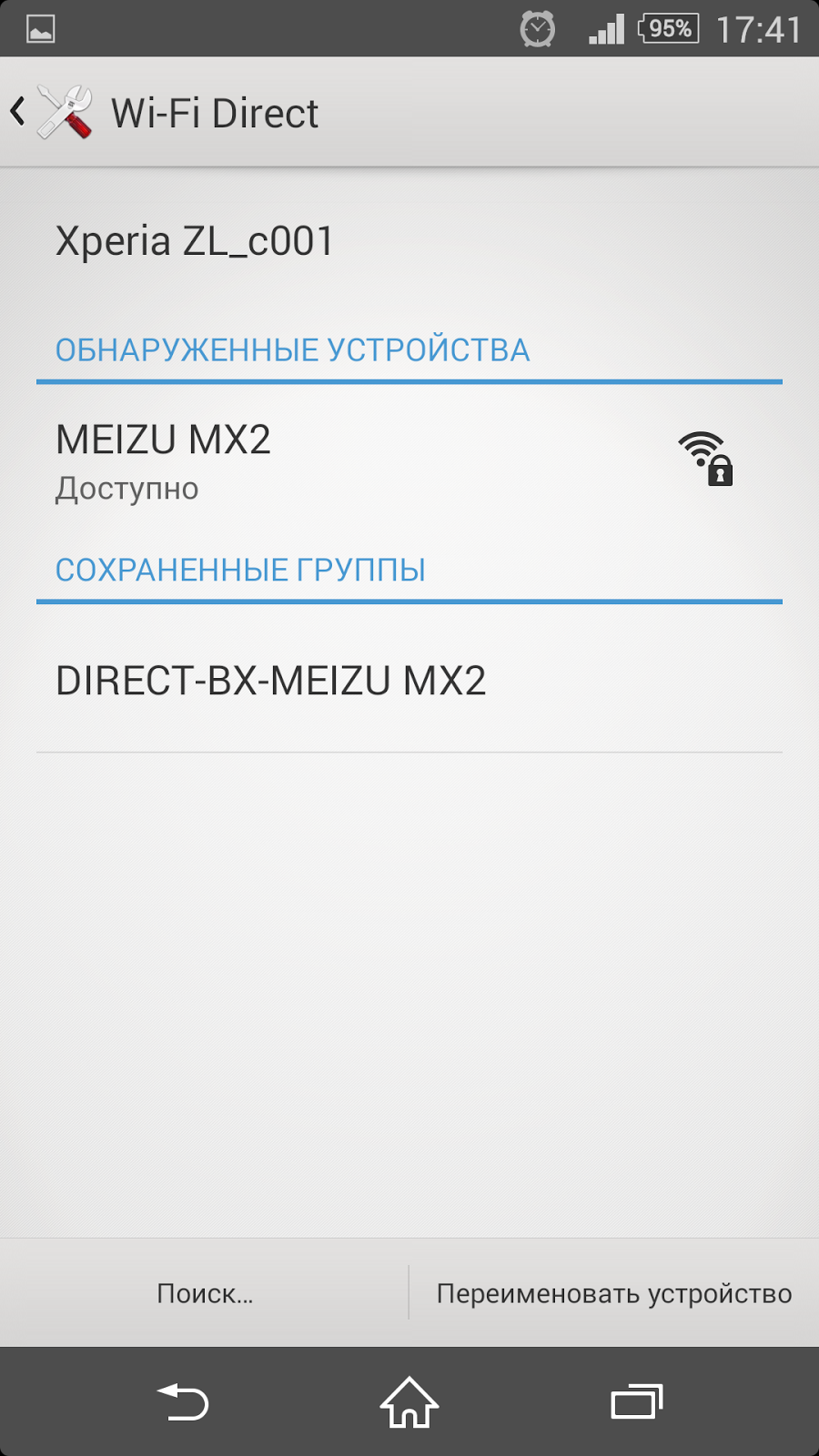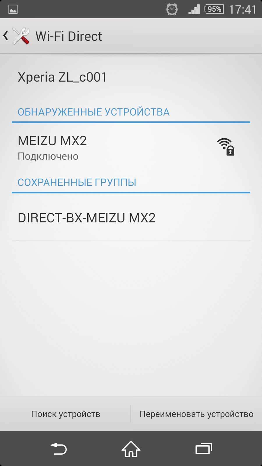 Как показала практика Wi-Fi Direct зачастую не может работать на смартфонах одновременно с интернет подключением через Wi-Fi.