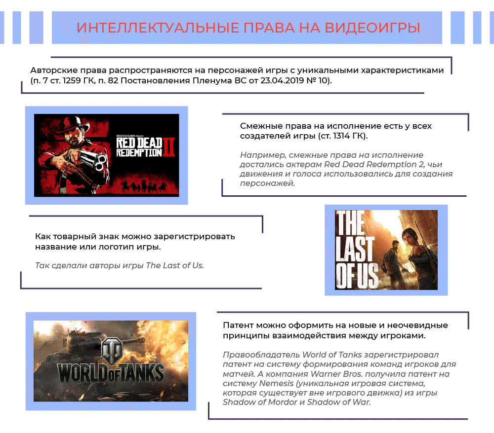 Судебной практики по таким делам в России пока мало, говорят юристы. Но лучше заранее знать, как защитить свои права, чем доводить спор до суда. Законодательство Для регулирования разработки игр готовят законопроект